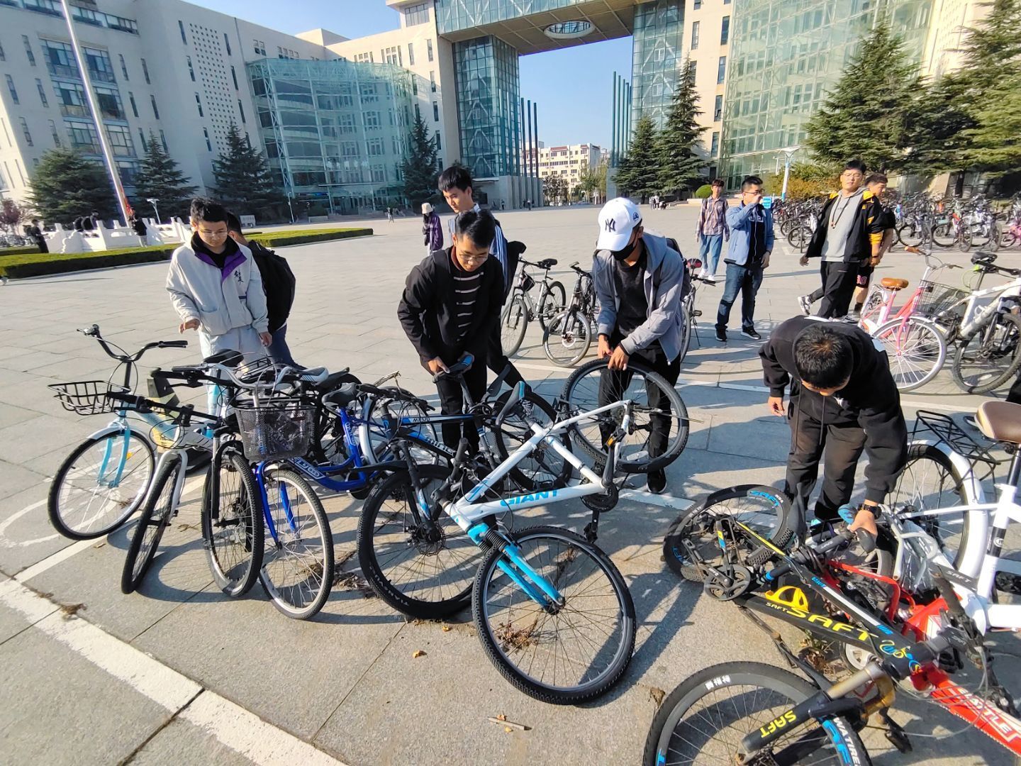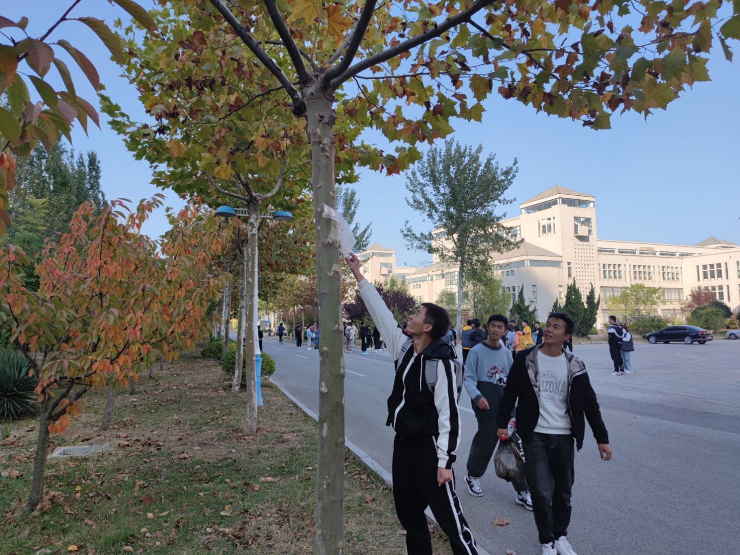活动开始前,参与志愿服务的同学在院馆大厅集合,领取清扫工具,并进行工作区域划分。本次志愿服务共分成三项内容,即清扫机电学院院馆东、北、西3侧的路上及南侧海豚广场的落叶,摆放综合楼南侧、北侧、一二教前、五教前的自行车,捡拾教学南路和临山路两边的草坪的垃圾。他们分工明确,团结协作,相互扶持,展现了良好的协作互助的志愿服务精神。