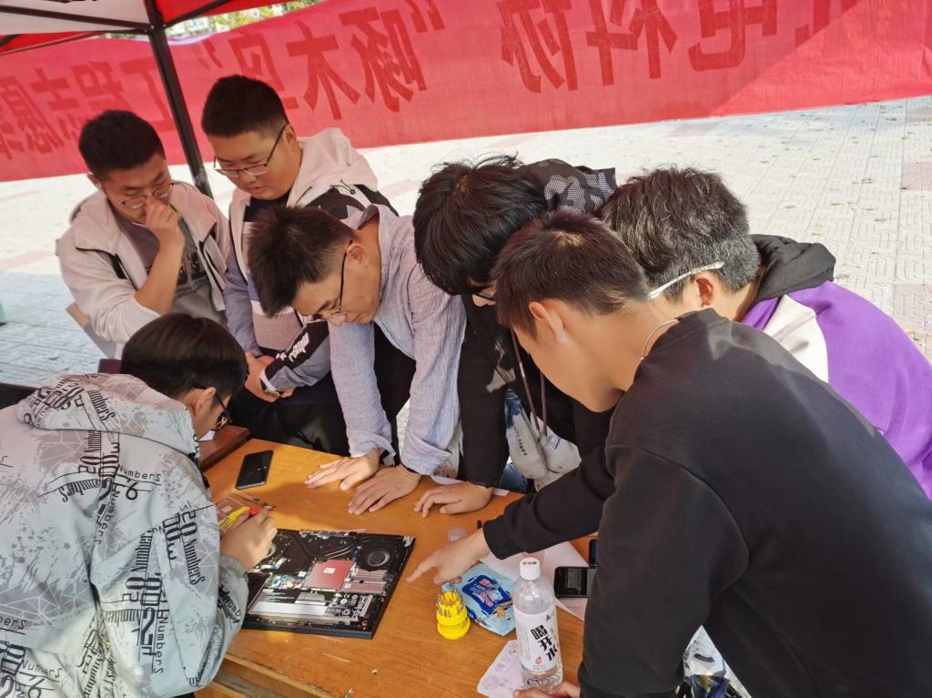志愿者们分成两批提前前往青春广场和烟大家属院进行活动场地布置,确保了维修活动的顺利进行。基于前期的有力宣传,活动伊始,便有许多同学和居民前来咨询和维修产品,在志愿者对产品登记后,设备被转交给技术人员进行维修,技术人员根据电子产品的不同性能选择不同的方法进行拆卸。本次维修活动包括软件方面的病毒查杀、系统优化、软件安装,硬件方面的机箱内部灰尘清除、电源的灰尘清除以及硬件维修等。在此次维修活动中,部分志愿者们前往烟大家属院帮助居民们维修电脑故障,解答电脑方面的疑惑。志愿者们专业的操作技术,耐心的服务态度收获了居民们的一致好评。在青春广场的维修活动现场,志愿者代表王远洋运用熟练的技术对电脑进行拆机、清灰、组装等一系列操作并对电脑内部结构及各硬件位置进行了简要介绍。在场同学专注聆听,认真记录。活动结束后,一位同学表示:“通过志愿者的详细讲解我对电脑拆装步骤有了初步的认识,同时也对电脑硬件知识有了更加深入的了解。”此外,部分20级新生志愿者在技术人员的指导下完成了简单的组装及电脑清灰工作,在理论与实践结合的过程中收获了成长。