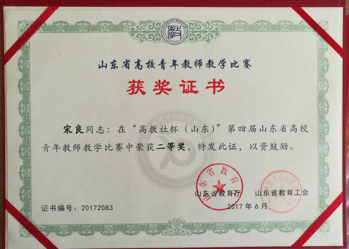宋良老师获得第四届山东省高校青年教师教学比赛二等奖