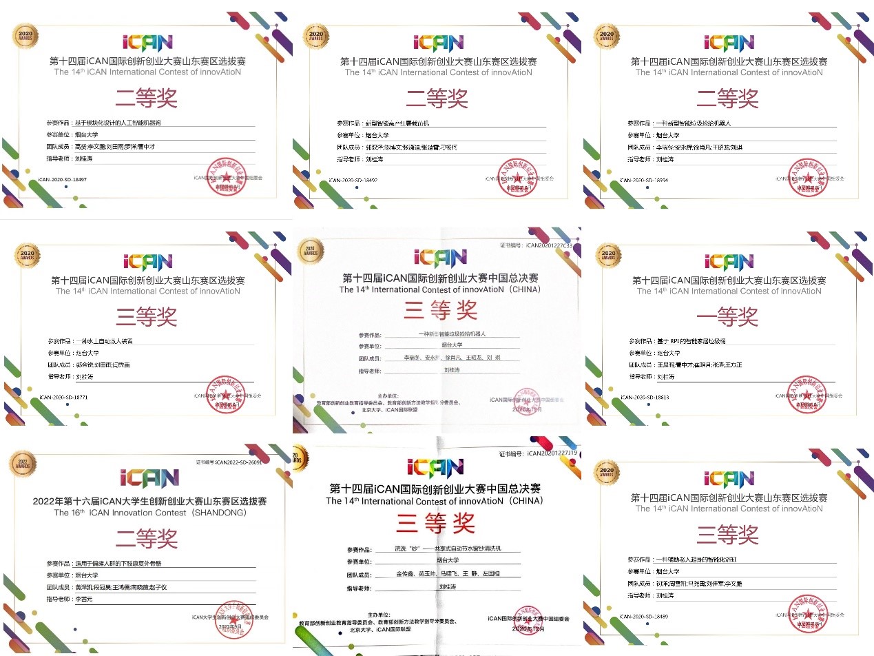 以下为部分获奖证书: